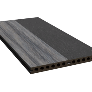 Med Heimdal komposit terrassebrædder får du en moderne og eksklusiv terrasse, der kombinerer flot design med praktiske fordele. Plankerne er vendbare med farverne Black/Grey eller Oak/Hardwood, så du selv kan vælge udtryk – og endda skifte look efter nogle år ved blot at vende brættet.